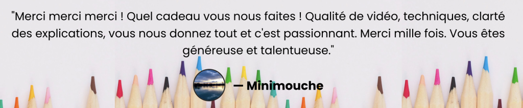 - Vidéos bonus (crayon aquarellable, roue chromatique, papier calque, blender, tablette lumineuse)
