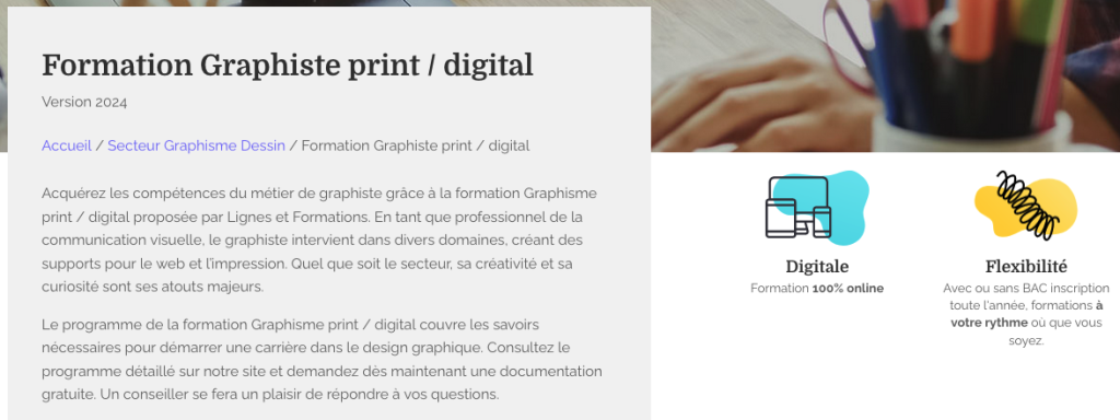 Mon choix N°3, la formation Graphiste de Lignes&Formations pour son suivi pédagogique