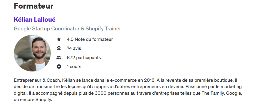 🌟 Kélian Lalloué, entrepreneur expérimenté, partage ses connaissances et astuces pratiques. Cette formation attire un large public, des débutants aux entrepreneurs expérimentés souhaitant migrer leur boutique sur Shopify ou approfondir leurs compétences.